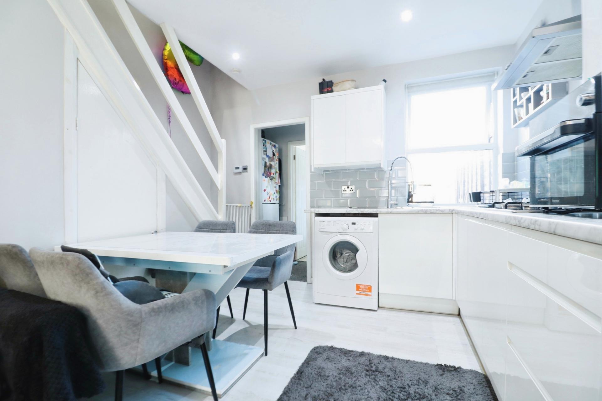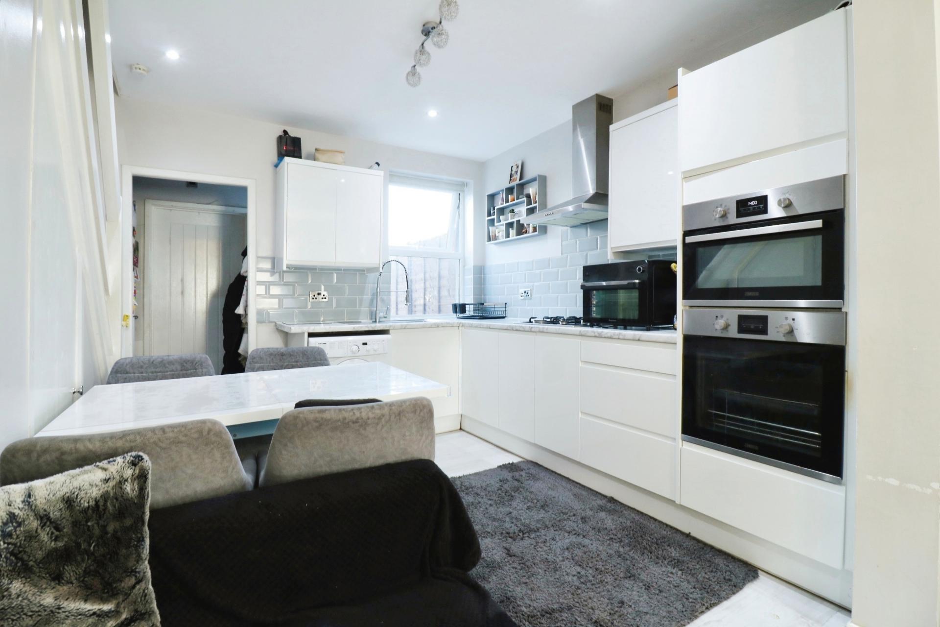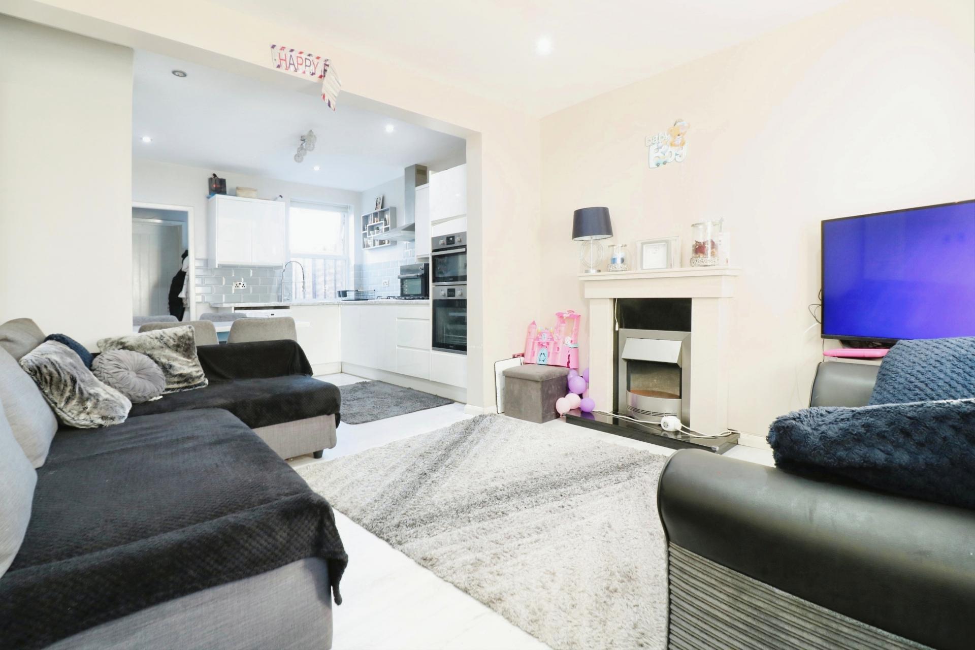 The property offers contemporary living with accommodation comprising; an open plan living room and modern fitted kitchen with space for a dining table and chairs and stairs leading to the first floor. There is an inner hall with an inbuilt recess for a fridge freezer, a double glazed door leading out to to the garden and door through to a downstairs bathroom fitted with a white three piece suite comprising; a wash hand basin with vanity unit, low level W.C, panelled bath with a mains shower over and a built in cupboard housing a 'Worcester' combination boiler which has been updated by the current owners. On the first floor there are two double bedrooms, the second having a built in storage cupboard. Outside the rear garden is low maintenance having been laid to artificial lawn, with a small patio area and a gate giving side access. The vendors have informed us that there is a right of way to the rear allowing neighbouring properties side access.
