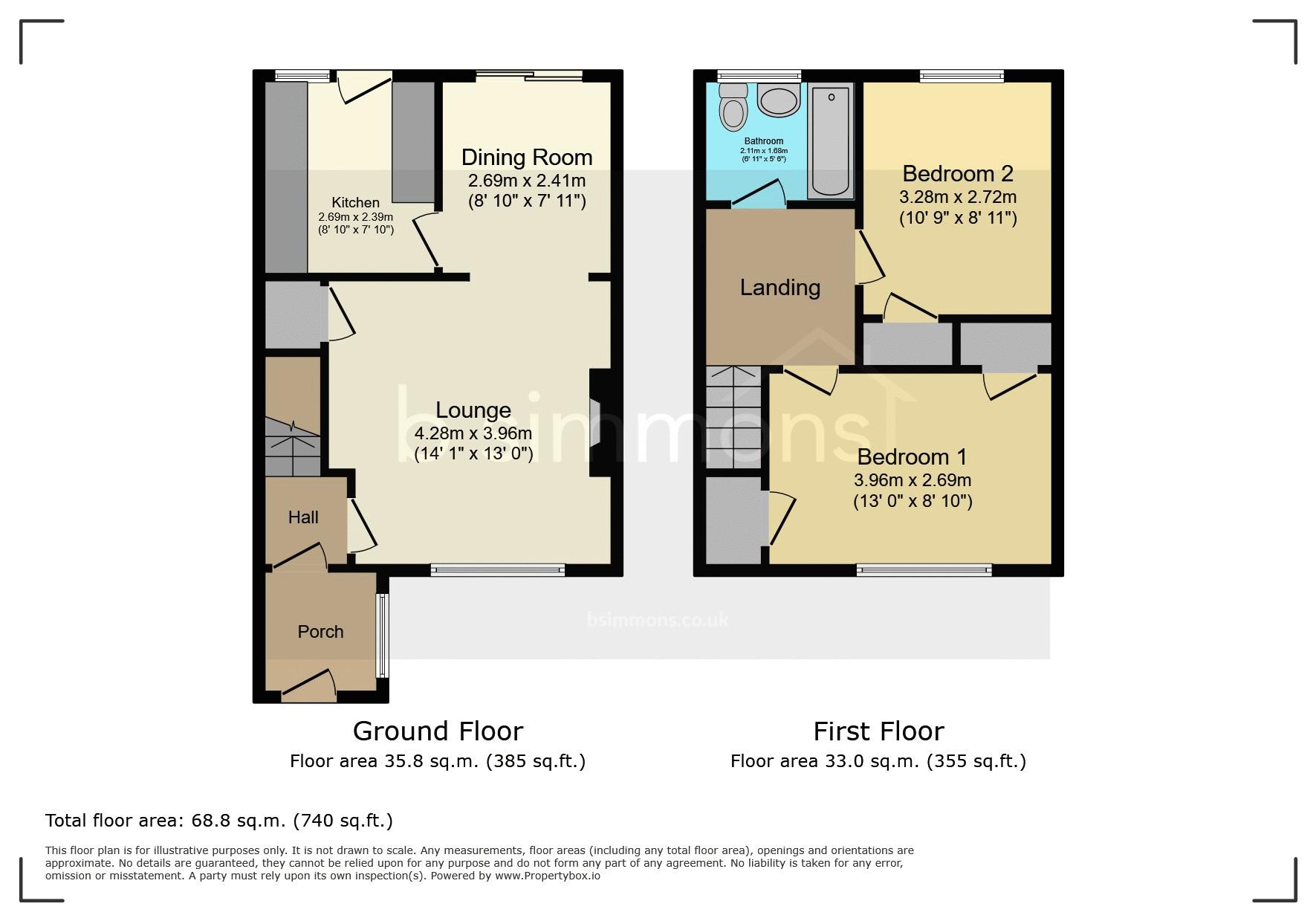 As you enter the property, you walk into an open porch which has been added by the current owners and leads through to a hallway with stairs leading to the first floor. The lounge and dining room are open plan and measures approximately 22', with a built in understairs storage cupboard and patio doors out to the garden. A door from the dining area leads through to a fitted kitchen which also has patio doors out to the rear garden. On the first floor, there are two double bedrooms both having built in cupboards and there is a separate family bathroom fitted with a matching three piece suite. Outside there is a private rear garden set over two tiers, a raised area laid to lawn and a sunken patio area. There are two brick built storage sheds and a gate giving rear access. To the front the gardens are open, predominantly laid to lawn with a pathway leading to the front door.