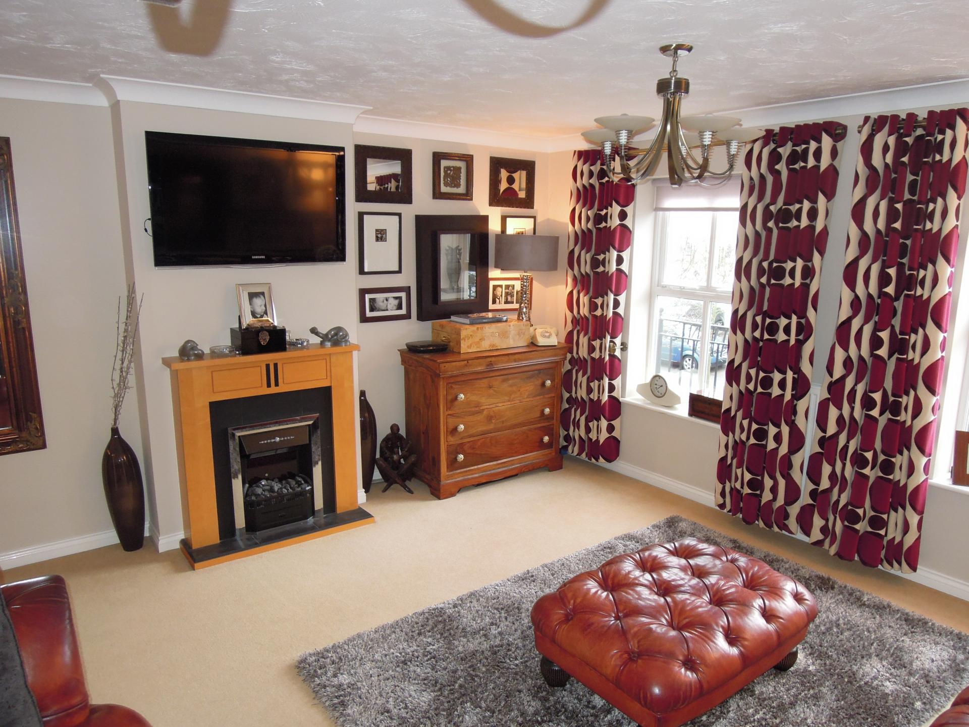 Front aspect, power points, radiator, electric fire with surround.