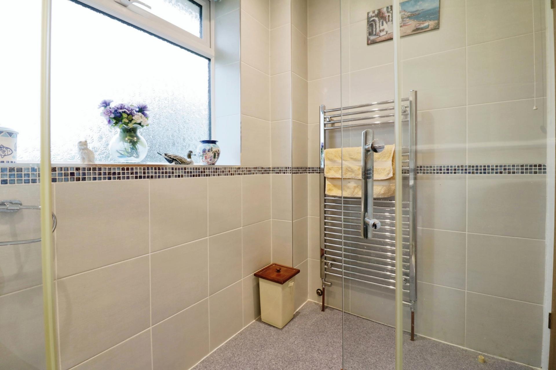 The property boasts a wide entrance hallway with stairs leading to the first floor and access to a fitted kitchen over looking the rear garden. There is a living room and separate dining room which can be connected as one once the bi-folding doors are opened between them, and patio doors giving access to the garden. On the first floor there are three well proportioned bedrooms, two doubles both having built in wardrobes and a dresser, a third single bedroom, a contemporary shower room and a separate W.C. Outside there is a private and secluded rear garden predominantly laid to law with flower and mature shrub borders, a patio area ideal for outside entertaining and a gate giving side access. To the front the garden is bordered with shrubs and there is a driveway providing off street parking leading to a garage with power and lighting.
