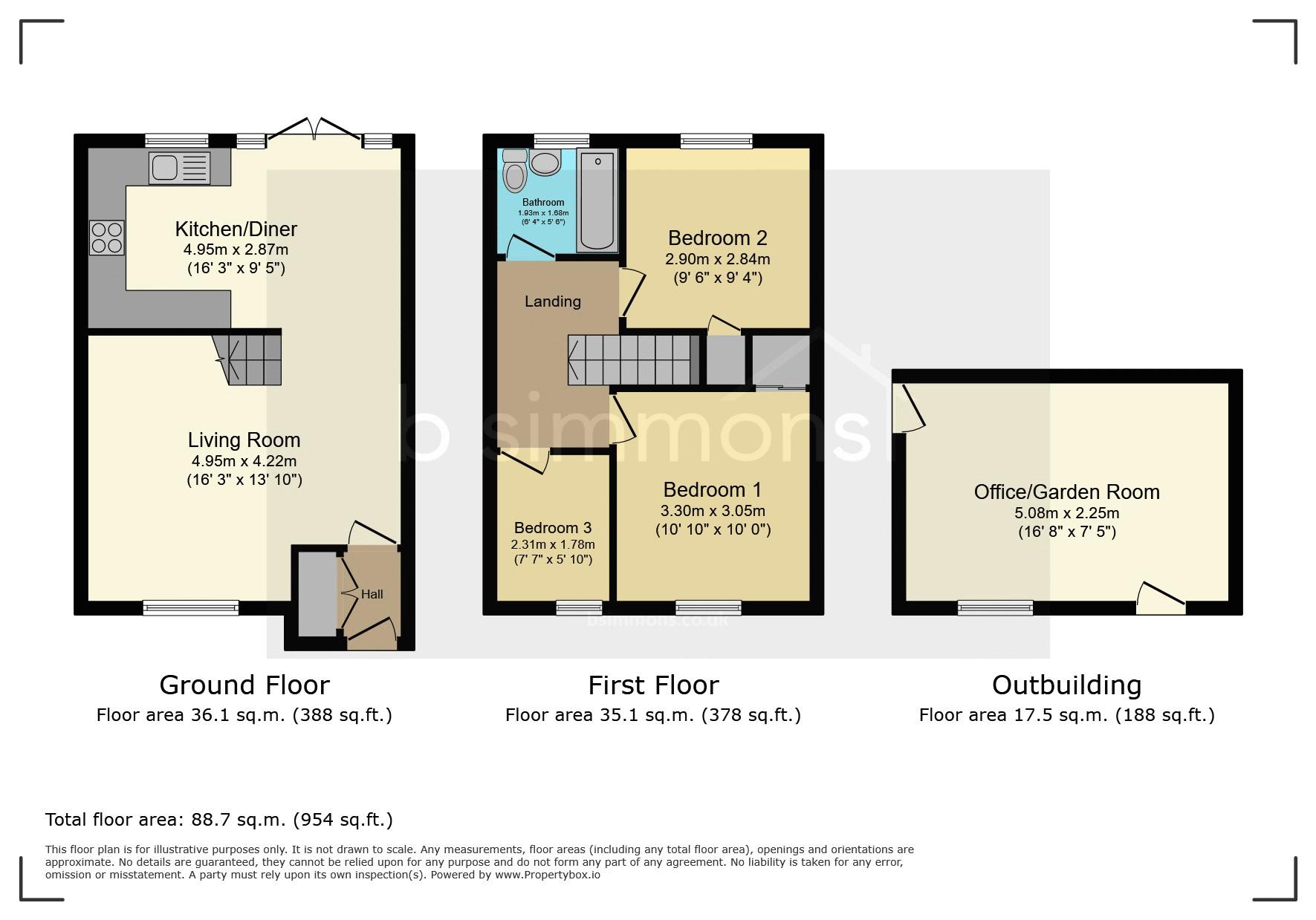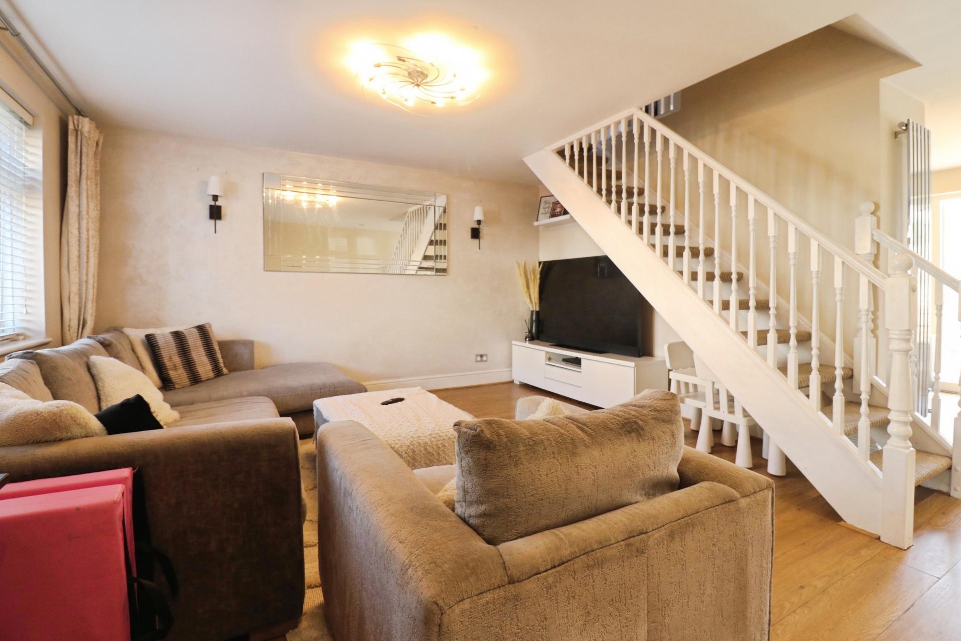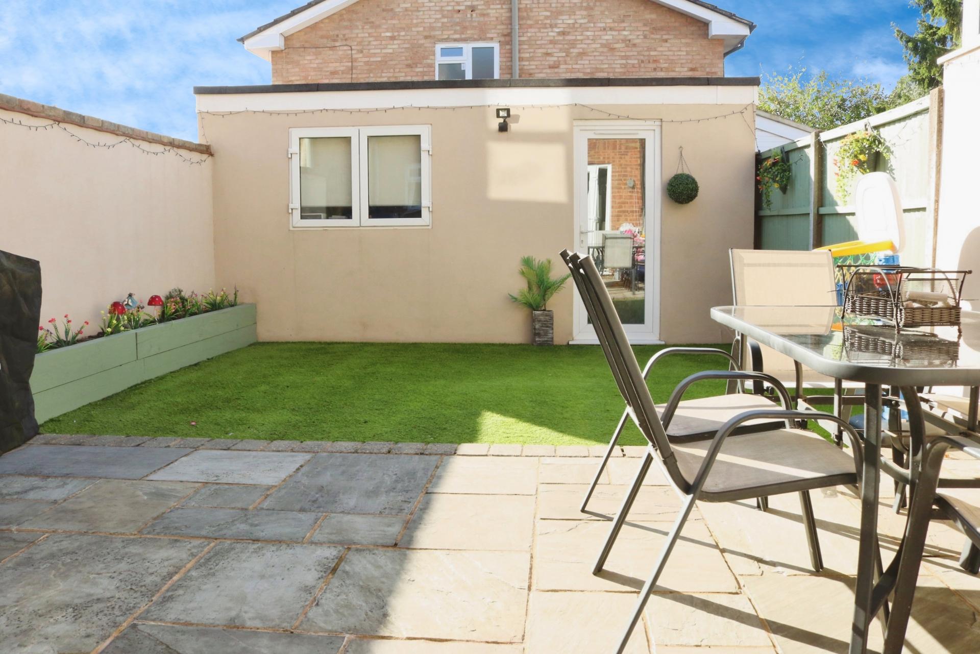 As you enter through the front door, you walk into an entrance porchway with a built in double storage cupboard. The property offers open plan contemporary living accommodation on the ground floor comprising, a spacious living room with an open staircase leading to the first floor. There is a modern fitted kitchen/diner with some integrated appliances which overlooks the rear garden. On the first floor there are three bedrooms, the master having built in wardrobes and there is a separate family bathroom fitted with a matching white suite and a mains shower over the bath. Outside, there is a private rear garden predominantly laid to artificial lawn with a patio area for outside dining. At the bottom of the garden the garage has been converted by the current owners and is currently used as an office/work room with a door leading out to a private driveway. To the front of this family home the garden has been laid to cobble style block paving.