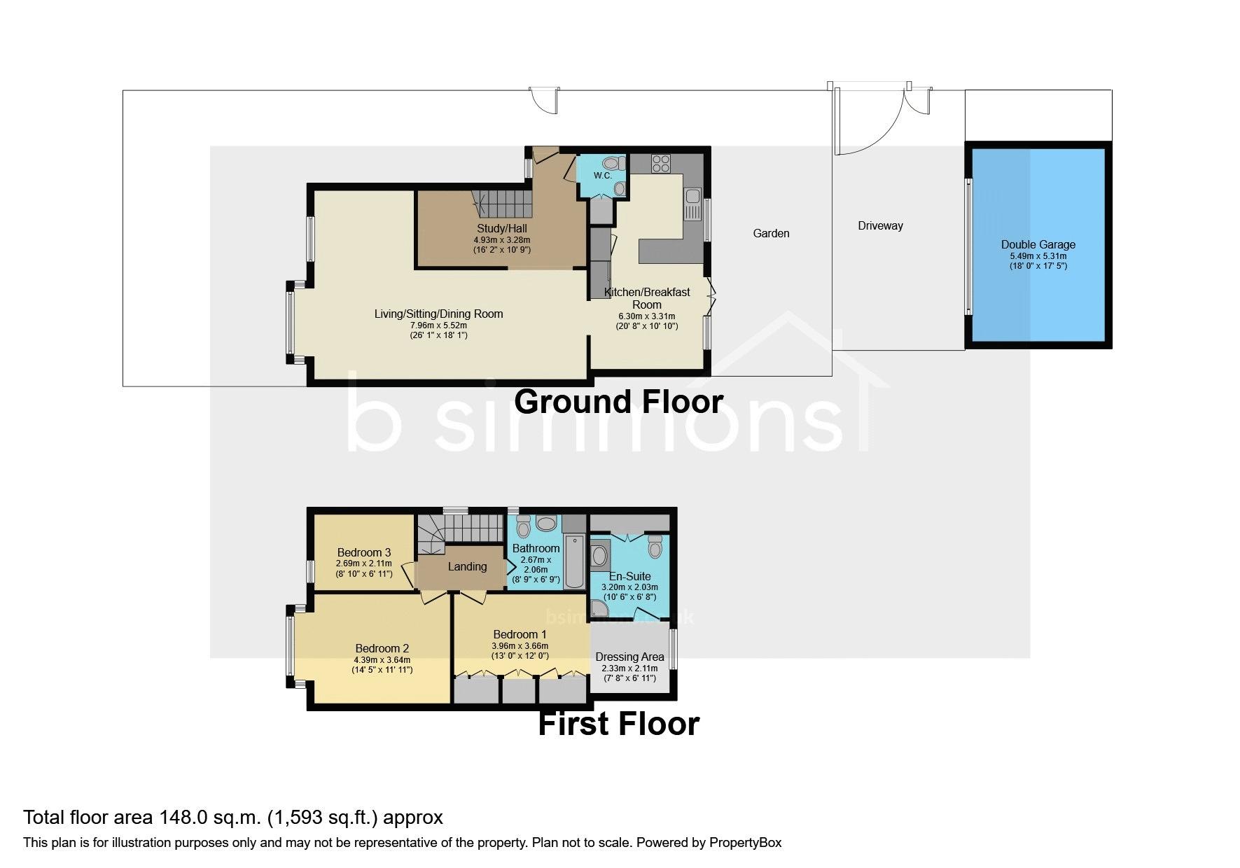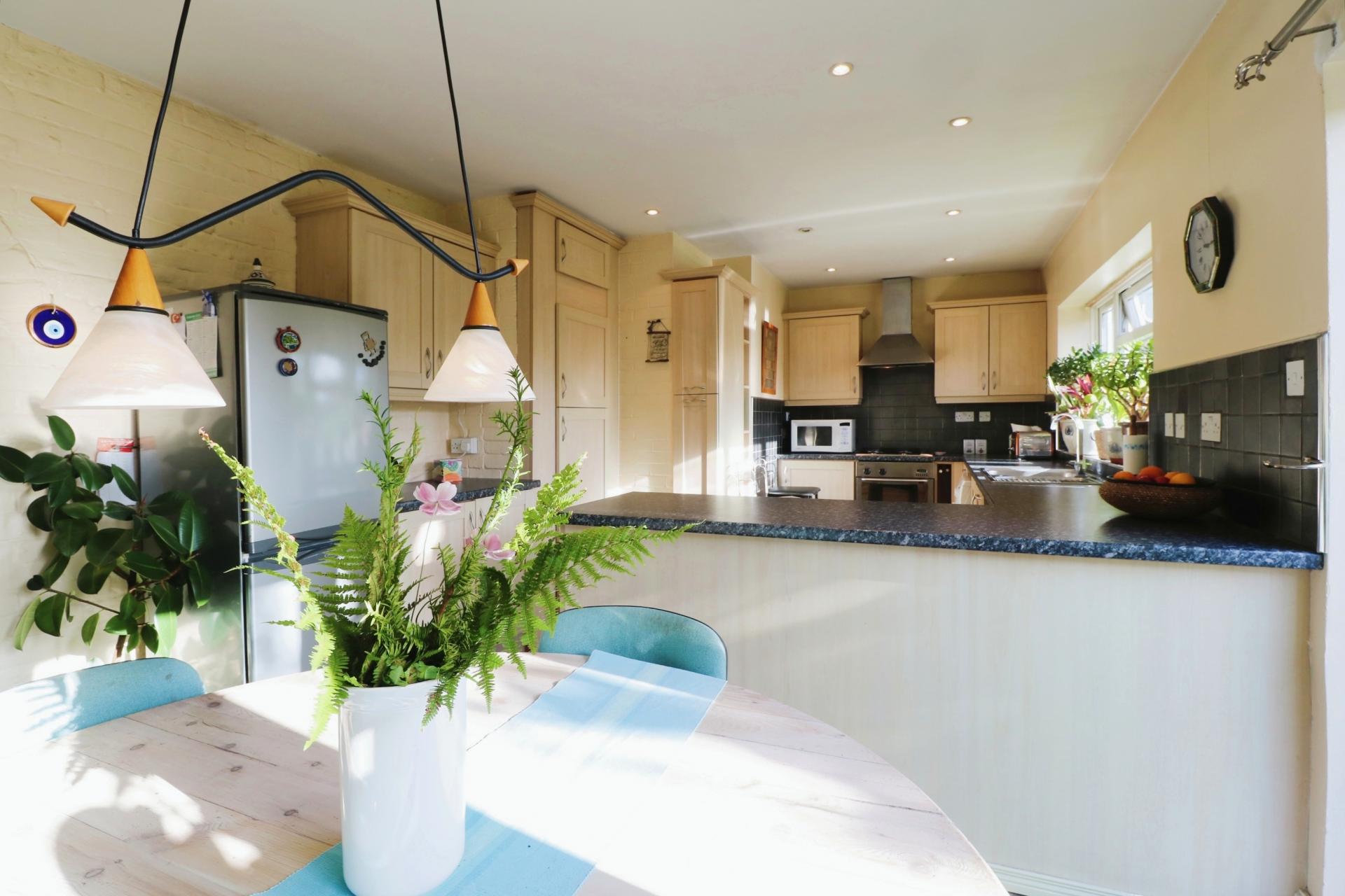 The property is in good decorative order throughout and has accommodation comprising; on the ground floor an entrance hallway with study area and built in desk, downstairs W.C, bay fronted open plan living/sitting/dining room and a modern fitted kitchen/breakfast room with ample space for a table and chairs and French doors out to the garden. On the first floor there is a master bedroom with built in wardrobes, a dressing area and an en-suite shower room. There is a separate family bathroom fitted with a matching white suite and shower attachment over the bath, as well as two more well proportioned bedrooms. Outside there are gardens to three sides of the property, predominantly laid to patio with a variety of flower, mature shrub and tree borders, whilst to the rear of the garden there is a double detached garage and driveway providing ample off street parking.