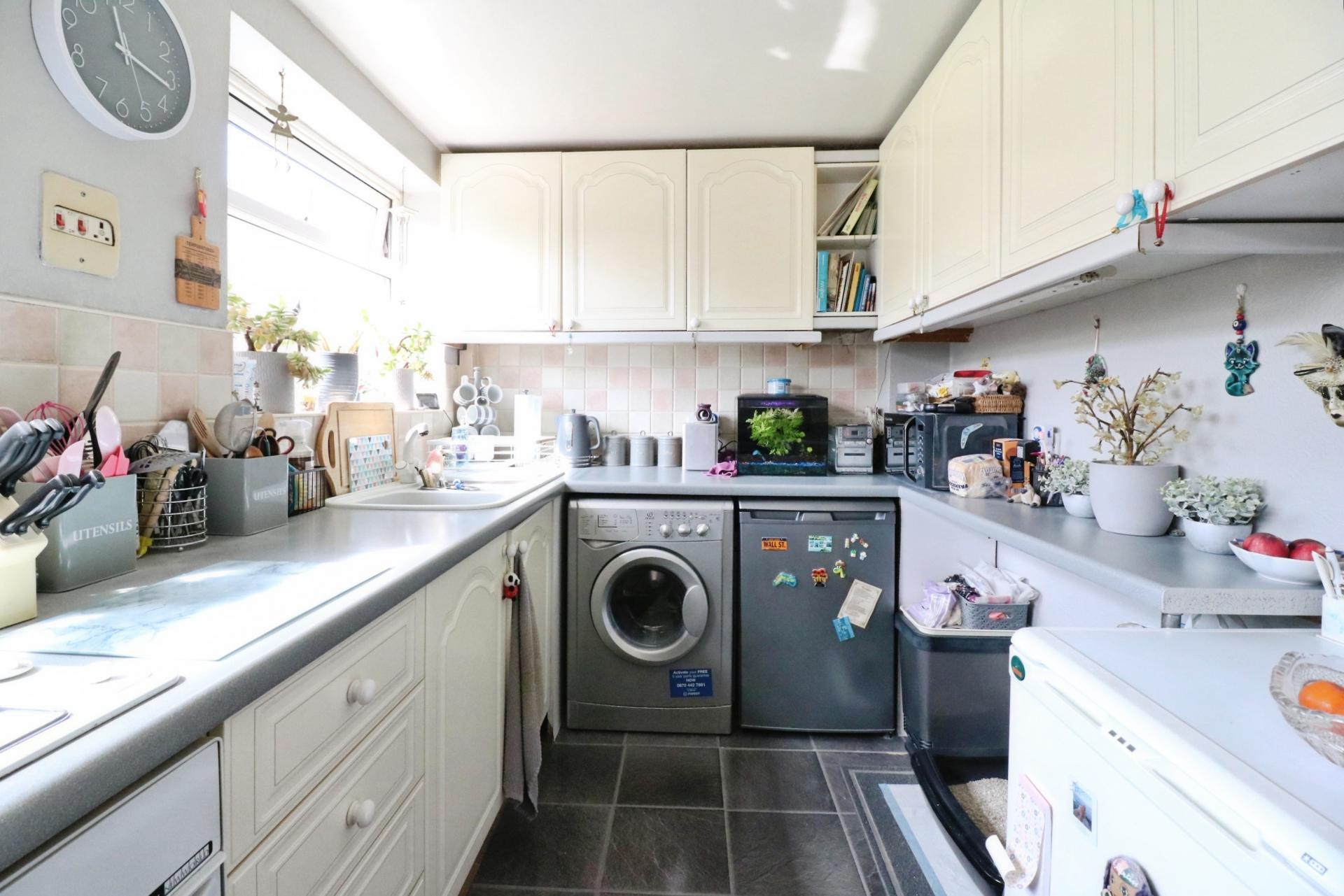 The size of the property is equivalent to a house being set over split levels and offers spacious, light and airy accommodation. As you enter through your front door, stairs lead to the first floor landing with doors to; an 'L' shaped sitting/dining room and a kitchen fitted with a range of matching wall and base units with roll top worksurfaces over and space for utilities. On the second floor there are two double bedrooms and a contemporary family bathroom fitted with a white three piece suite. Outside, the property has access to and use of large communal gardens which is to the centre of the development in front of this maisonette. There is also an allocated garage just a short walk from this home with off street parking to the front for one car.