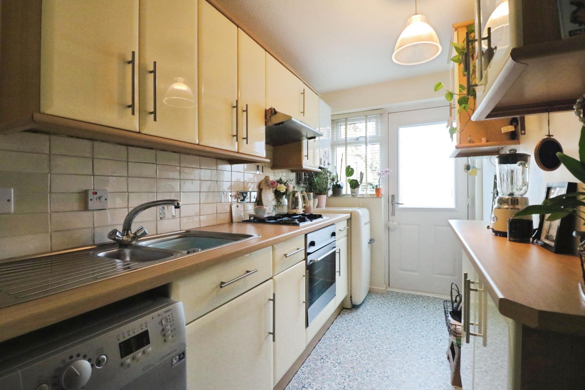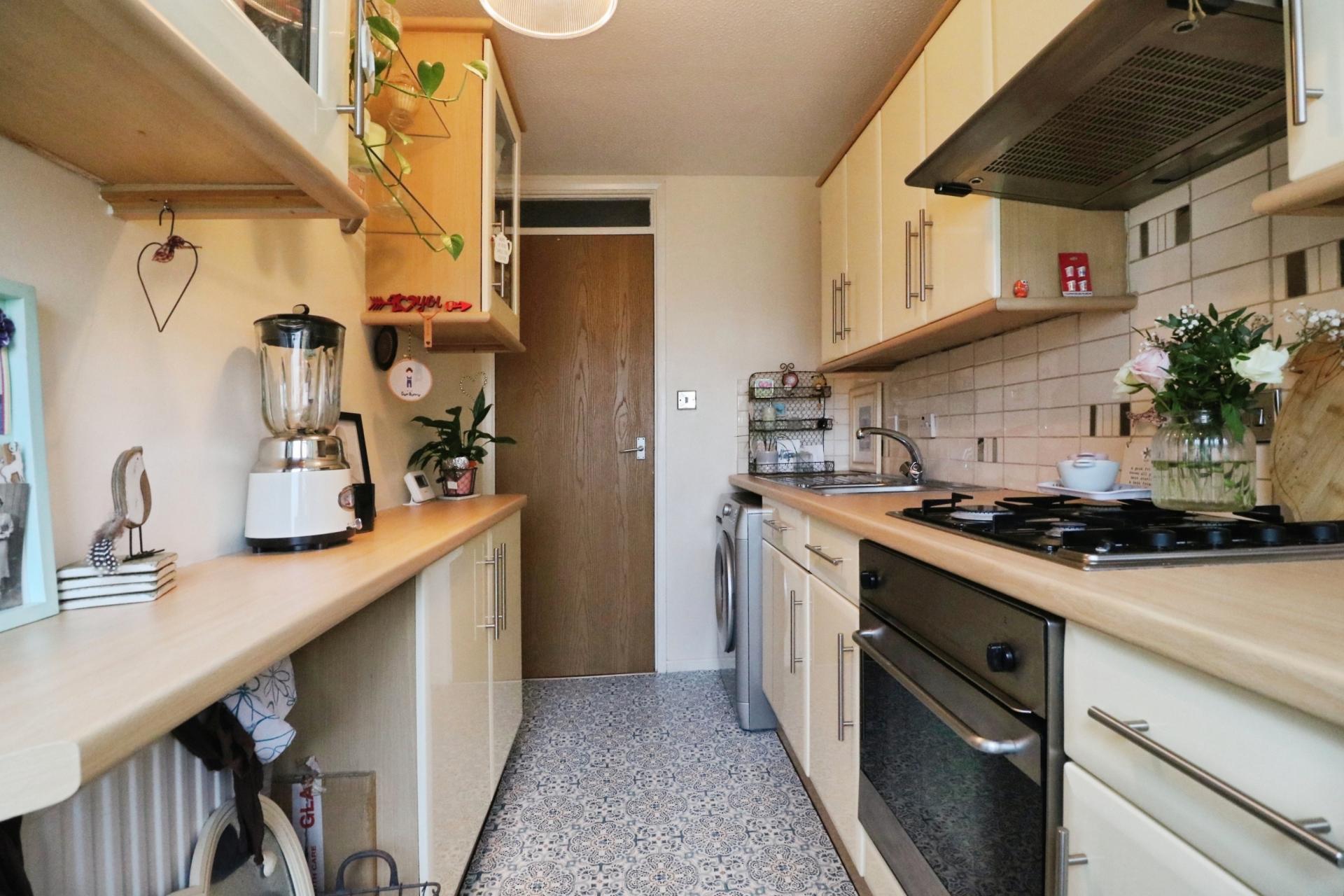 As you enter through your private front door you walk into an entrance hall leading through to an 'L' shaped living/dining room. An adjoining door leads through into an inner hallway and the current owner has cleverly converted a storage cupboard in to a study/office area. There is a modern fitted kitchen with space and plumbing for a washing machine, space for a fridge/freezer and a door giving access to communal gardens. The bathroom has been completely refurbished and has been fitted with a matching white three piece suite, shower screen and a shower installed over the bath. Lastly there is a double bedroom with built in wardrobes and outlooks on to the communal gardens. Outside there is a private garden to the front, predominantly laid to lawn with flower and shrub borders and a pathway leading to the front door. To the rear of this maisonette there are communal gardens and a residents car park with a carport allocated space giving off street parking for one car.
