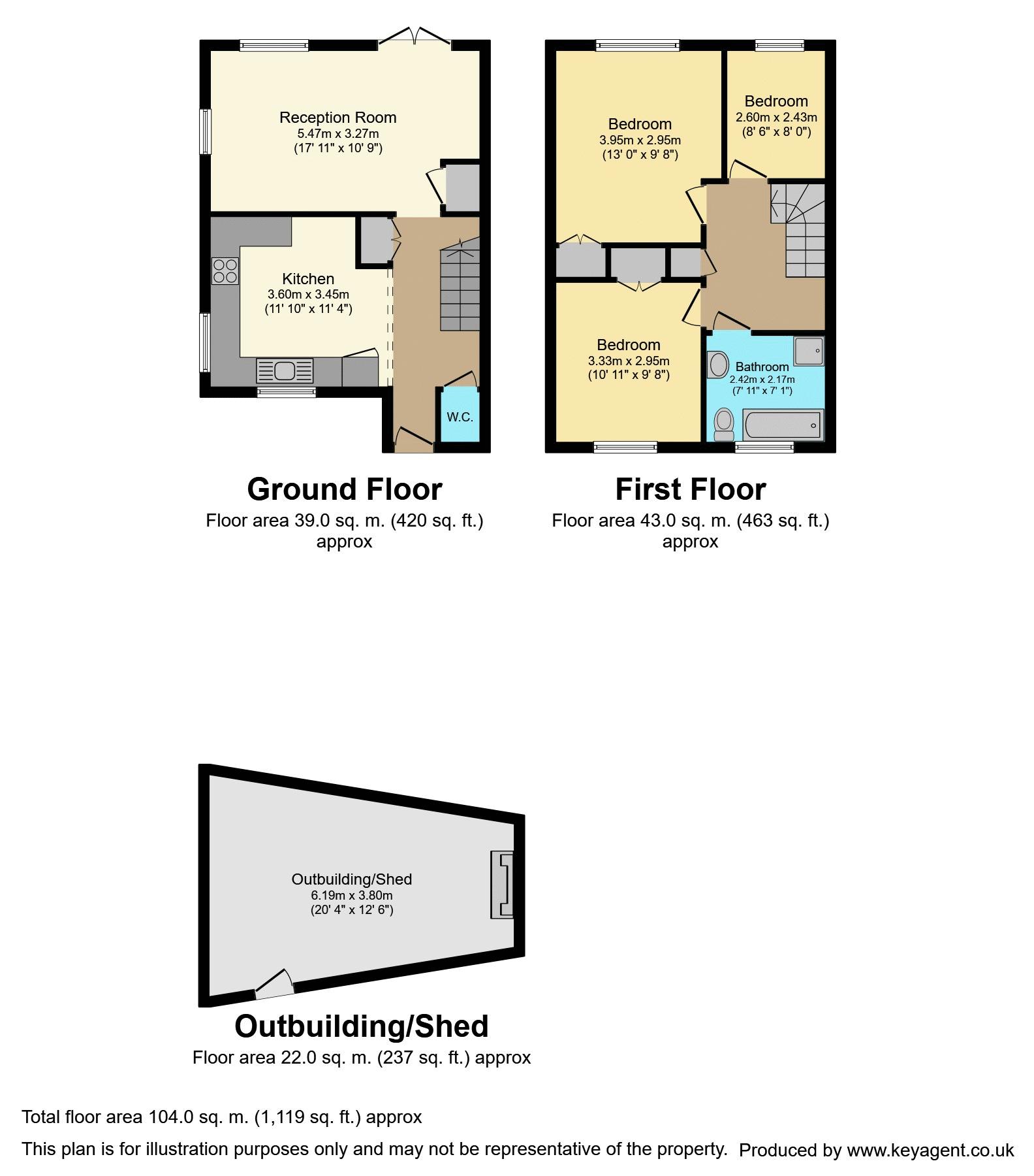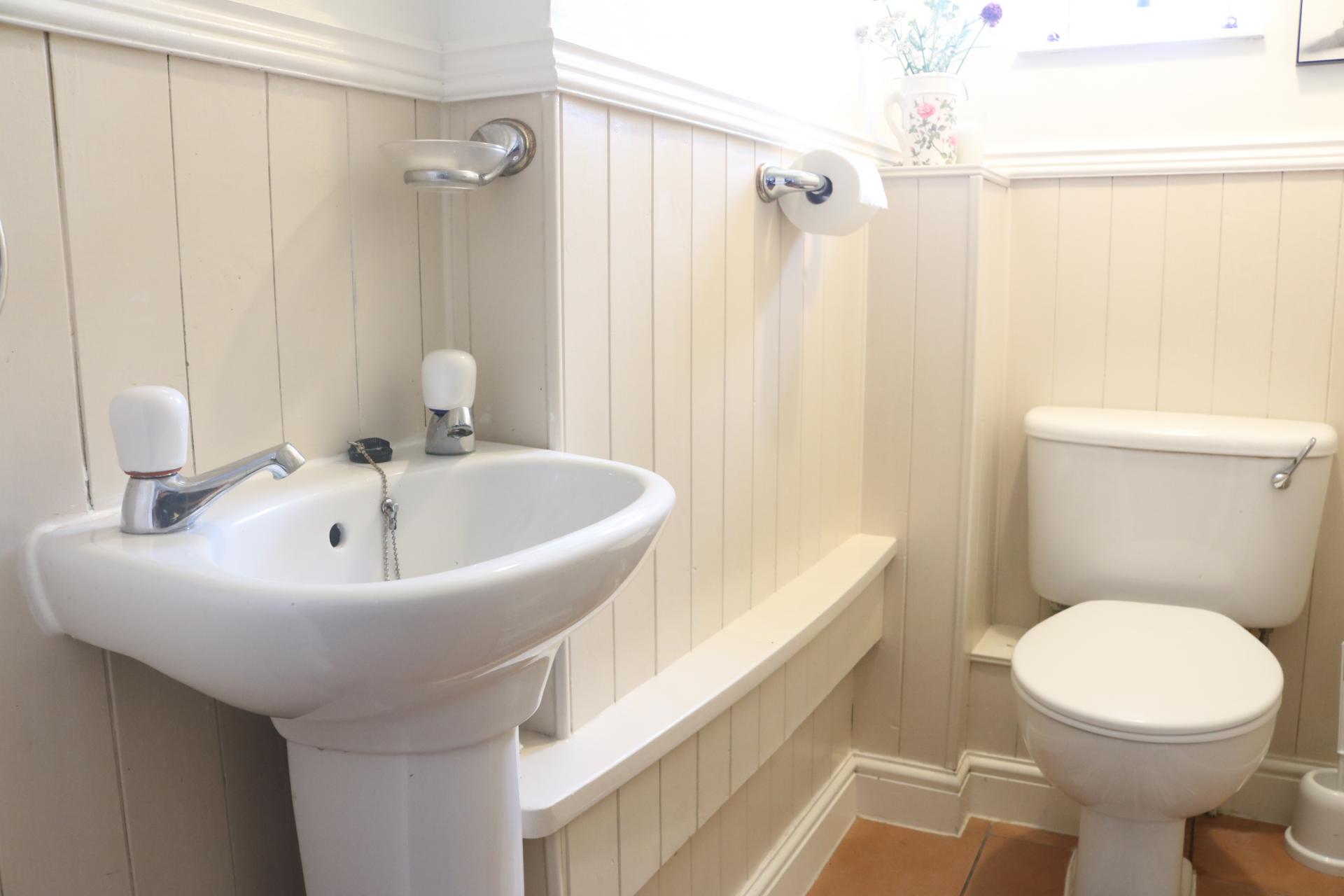 Front aspect double glazed window. WC. Hand basin.
