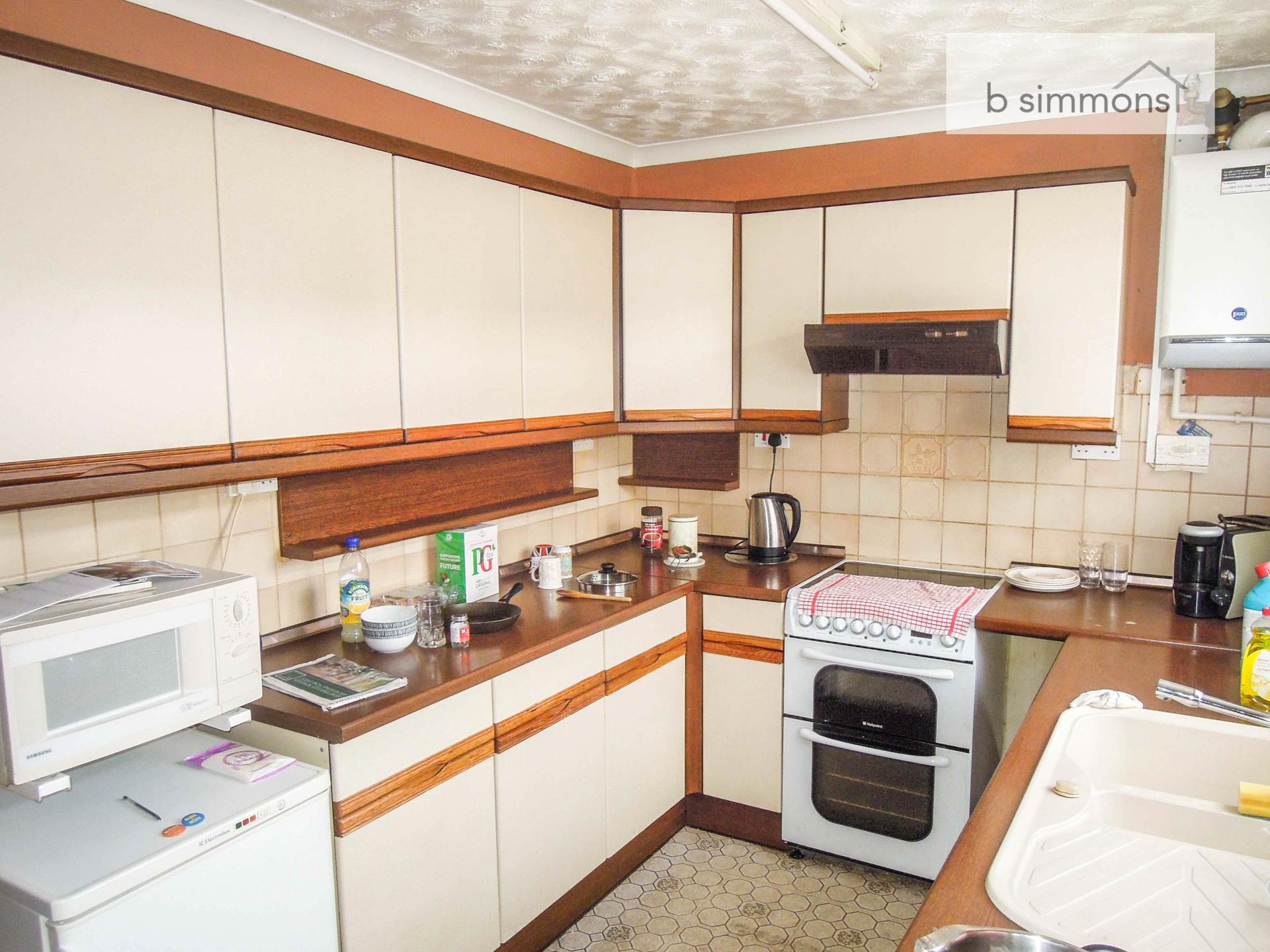 Rear aspect via window & French doors opening onto the garden, range of low level & eye level wall mounted units, sink unit and drainer, space for fridge / freezer & cooker, wall mounted boiler, plumbing for a washing machine, large under stairs storage cupboard. Power points.