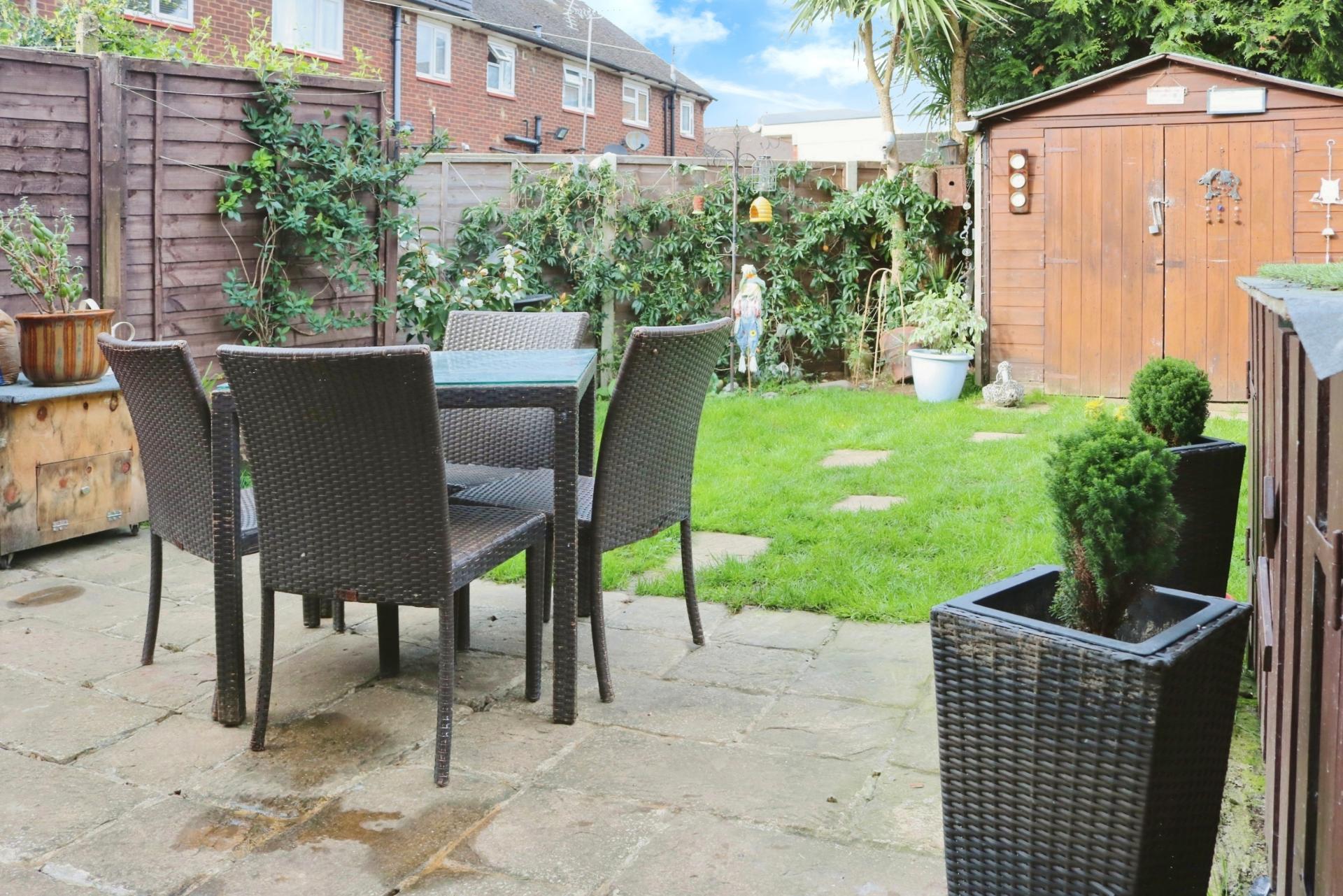 Having undergone refurbishment by its current owners the property is excellent order throughout and ready to move into. As you enter through the front door you walk into an entrance hallway with stairs leading to the first floor and an adjoining door into a light and airy living room with a fireplace. The current owners have had a 'John Lewis' kitchen fitted which overlooks the rear garden with plenty of room for a dining table and chairs. On the first floor there are two double bedrooms, the master having built in wardrobes and there is a contemporary bathroom fitted with a matching white suite which has also been updated by the current owners. Outside there is a private rear garden, laid to lawn with a variety of flower and shrub borders, a patio area for outside dining, a storage shed and a gate giving side access. To the front there is a small garden, predominantly laid to lawn with a flower and shrub border and a pathway leading to the front door.