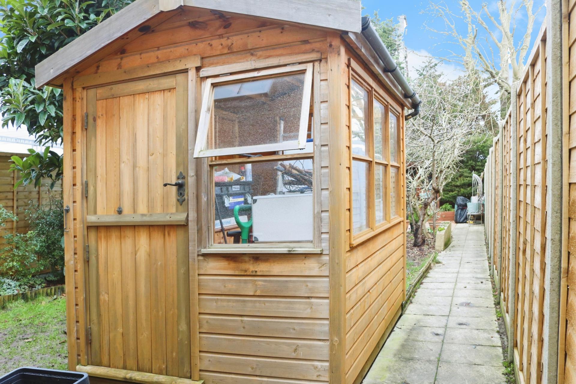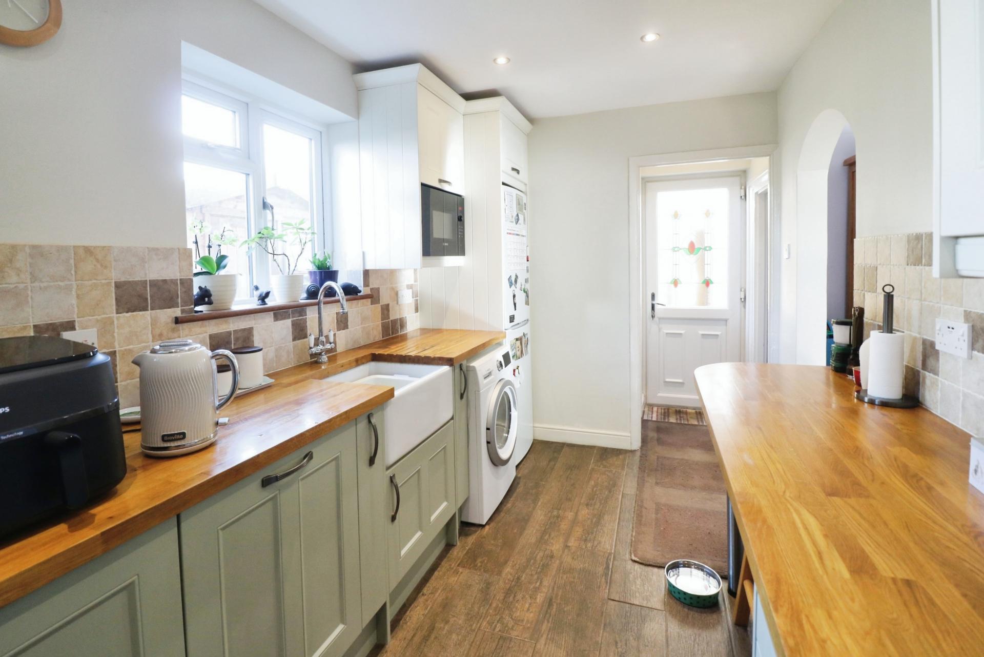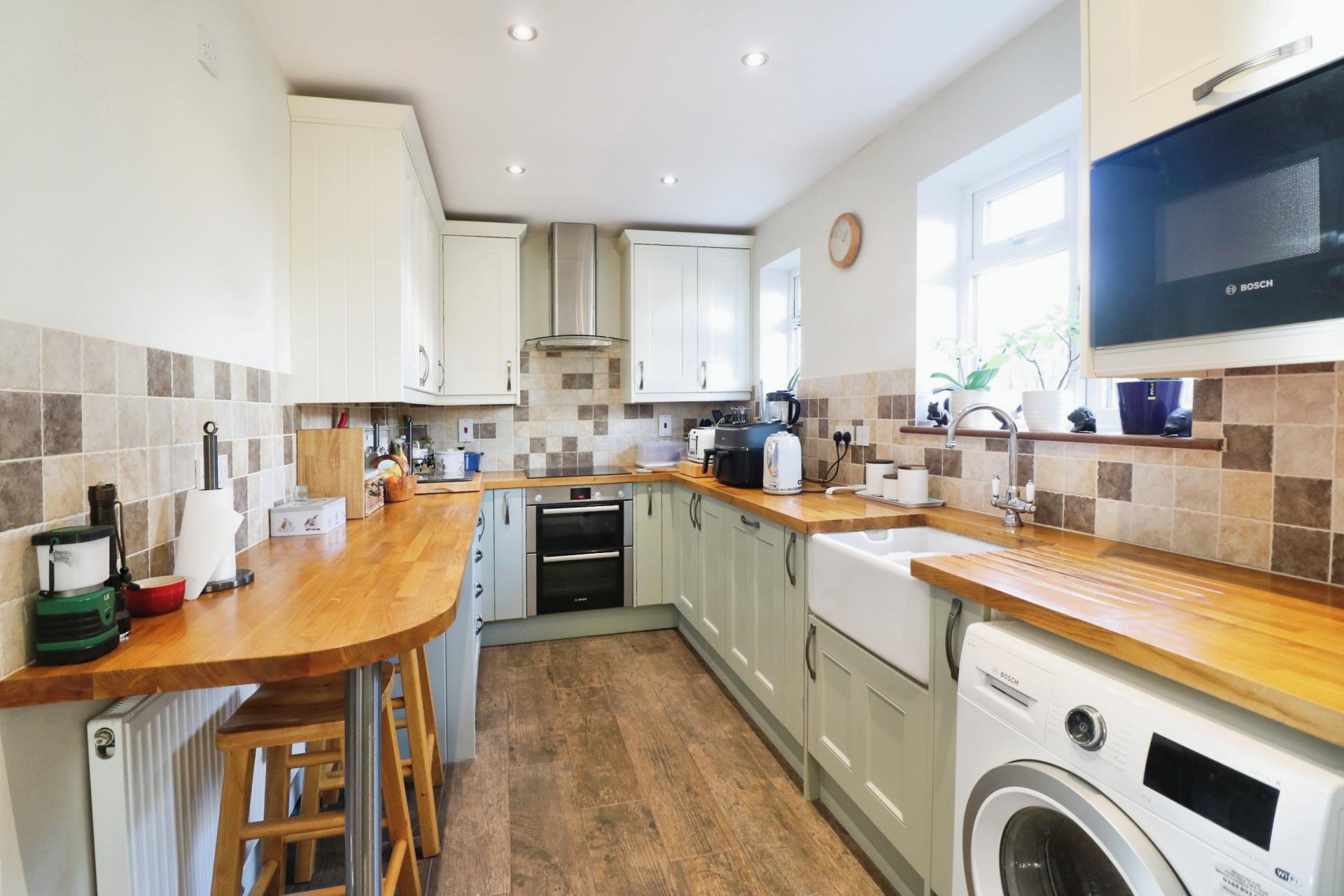 Internally the property has been well loved by its current owners and would make an ideal First Time Buy or Buy to Let investment. As you walk through the front door there are stairs leading to the first floor and an archway taking you through to the living room. The kitchen which overlooks the rear garden has been updated and increased in size, comes with the benefit of some integrated appliances, 'Oak' wooden worksurfaces, an understairs larder and a downstairs W.C. On the first floor there are two double bedrooms and a spacious bathroom comprising of an updated three piece suite with a mains shower over the bath. Outside there is a rear garden measuring approximately 60ft, laid partly to lawn with a variety of fruit trees comprising; a mature fig Brown Turkey, Loquat, Victoria Plum, Cherry, Conference Pear, eating apple and a grapevine, a garden potting shed, large patio area for outside entertaining and a summerhouse. To the front the garden has been converted to create driveway parking for two cars.