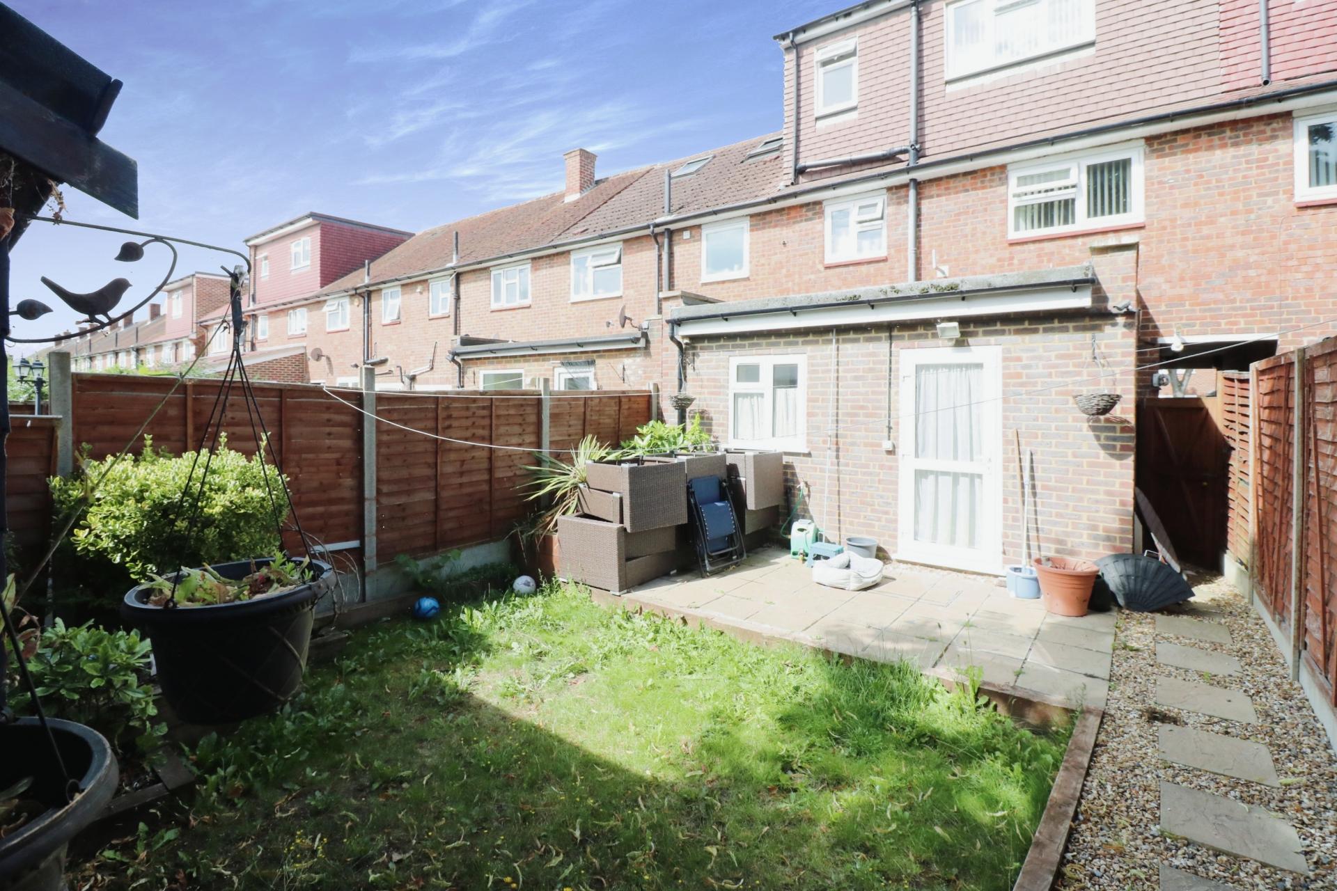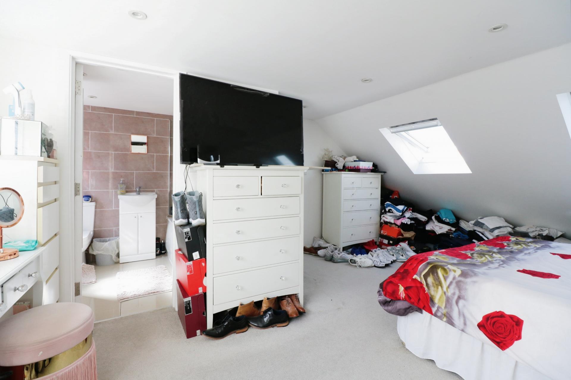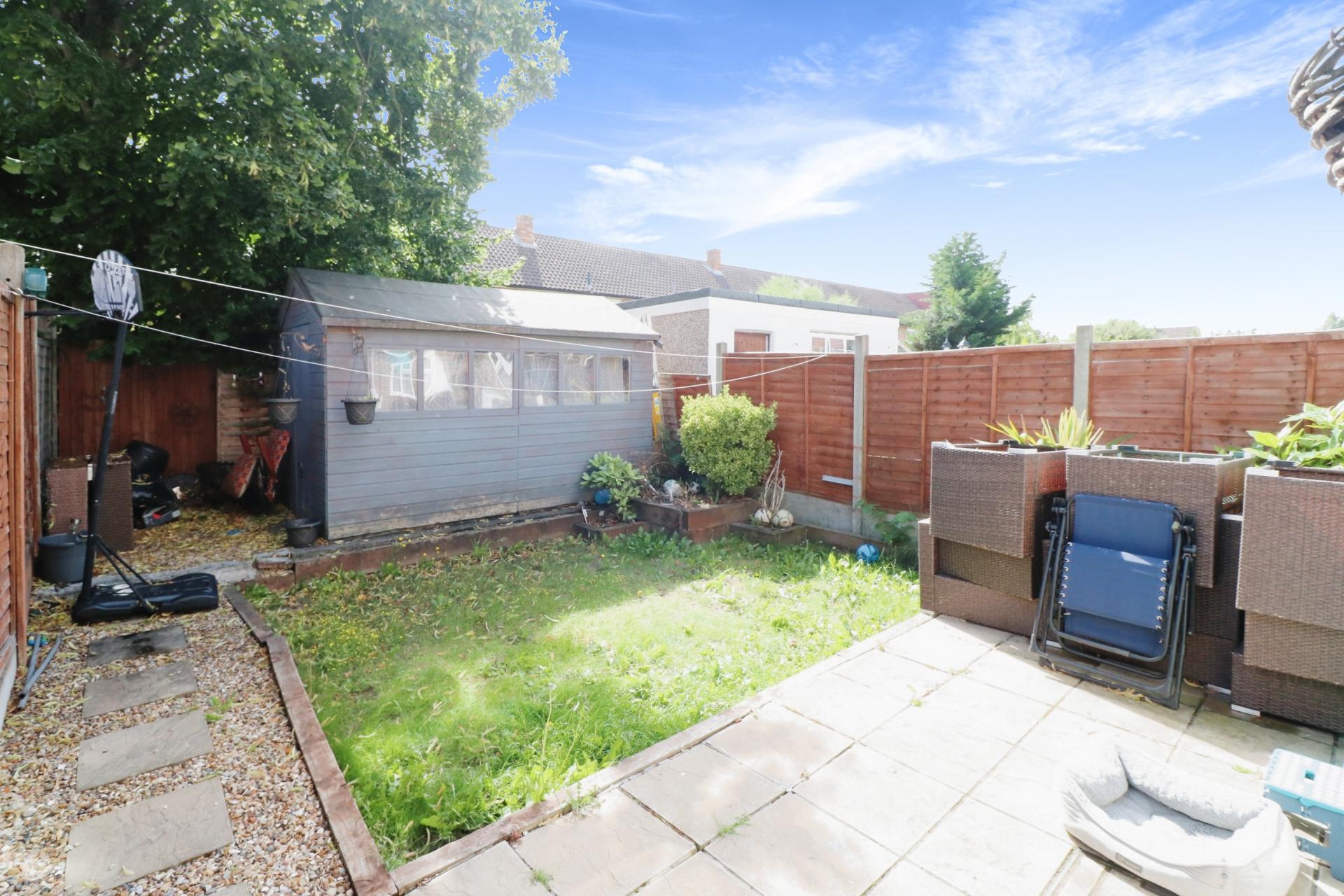 Internally the property offers light and airy spacious accommodation comprising; a porch/entrance hallway with stairs leading to the first floor, an open plan lounge/dining room through to a modern fitted kitchen overlooking the rear garden. On the first floor there are two double bedrooms and a bathroom fitted with a white suite comprising a wash hand basin with vanity unit, low level W.C and panelled bath with shower attachment over. On the second floor the loft has been converted to create a third double bedroom with an en-suite bathroom. To the rear of the property there is a private garden laid to lawn with a patio area for outside entertaining, a large storage shed and a gate giving side access. The front garden has been converted laid partly to block paving creating off street parking for two cars.