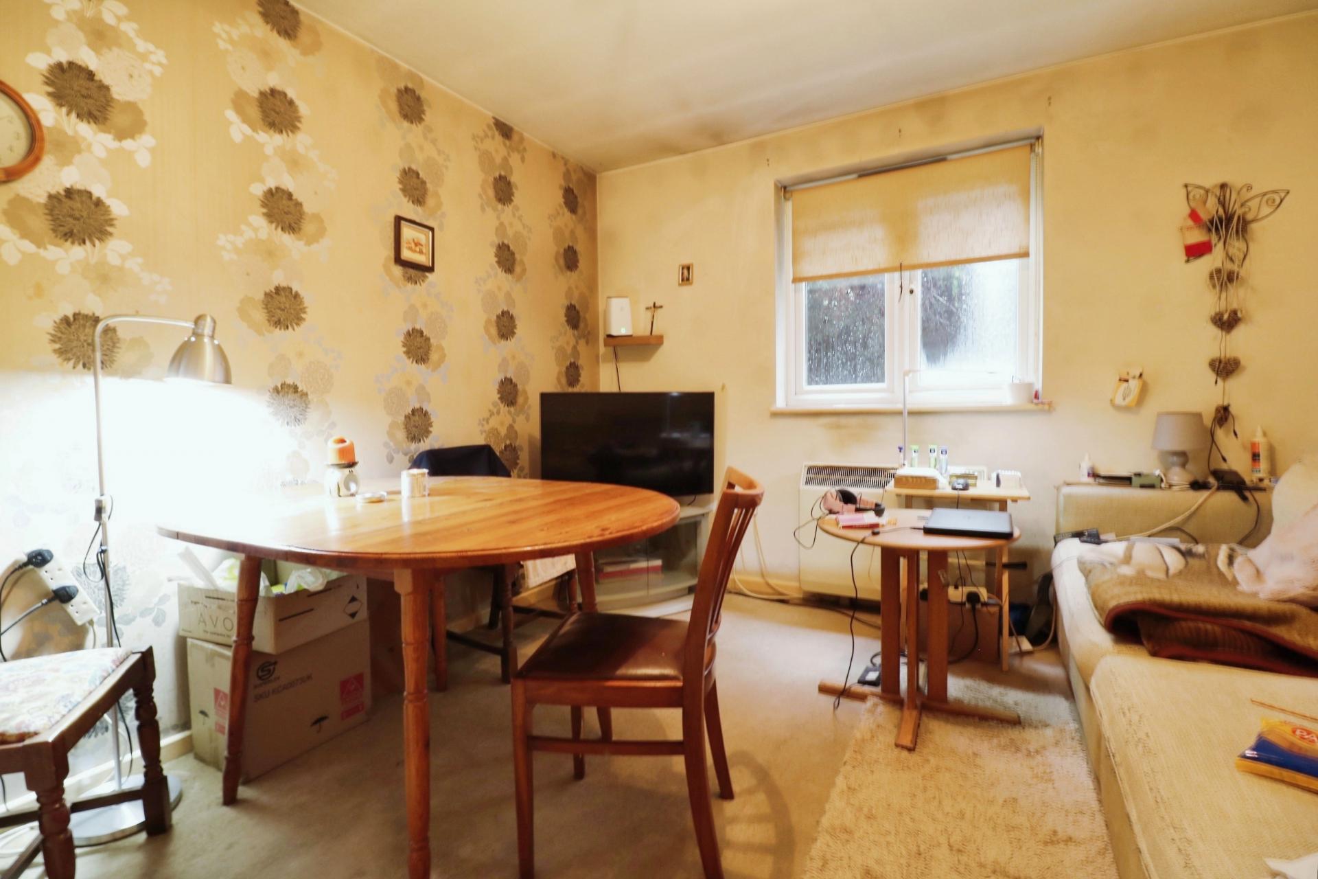 Internally the property requires modernisation and is currently tenanted. The property has a security entry phone system and accommodation comprising; an entrance hallway, two bedrooms, a living room, a bathroom fitted with a matching suite and a fitted kitchen having a range of matching wall and base units, roll top worksurfaces over, electric cooker point, space and plumbing for a washing machine and a fridge. Outside there are communal gardens and a residents car park providing ample off street parking.