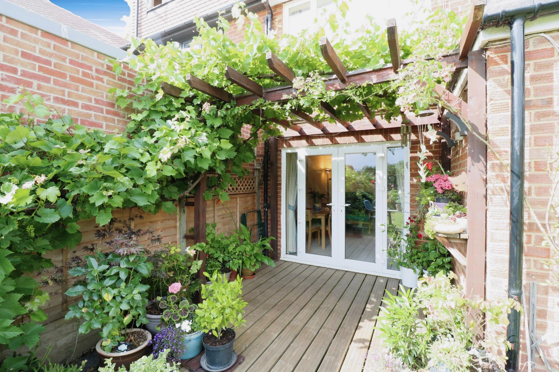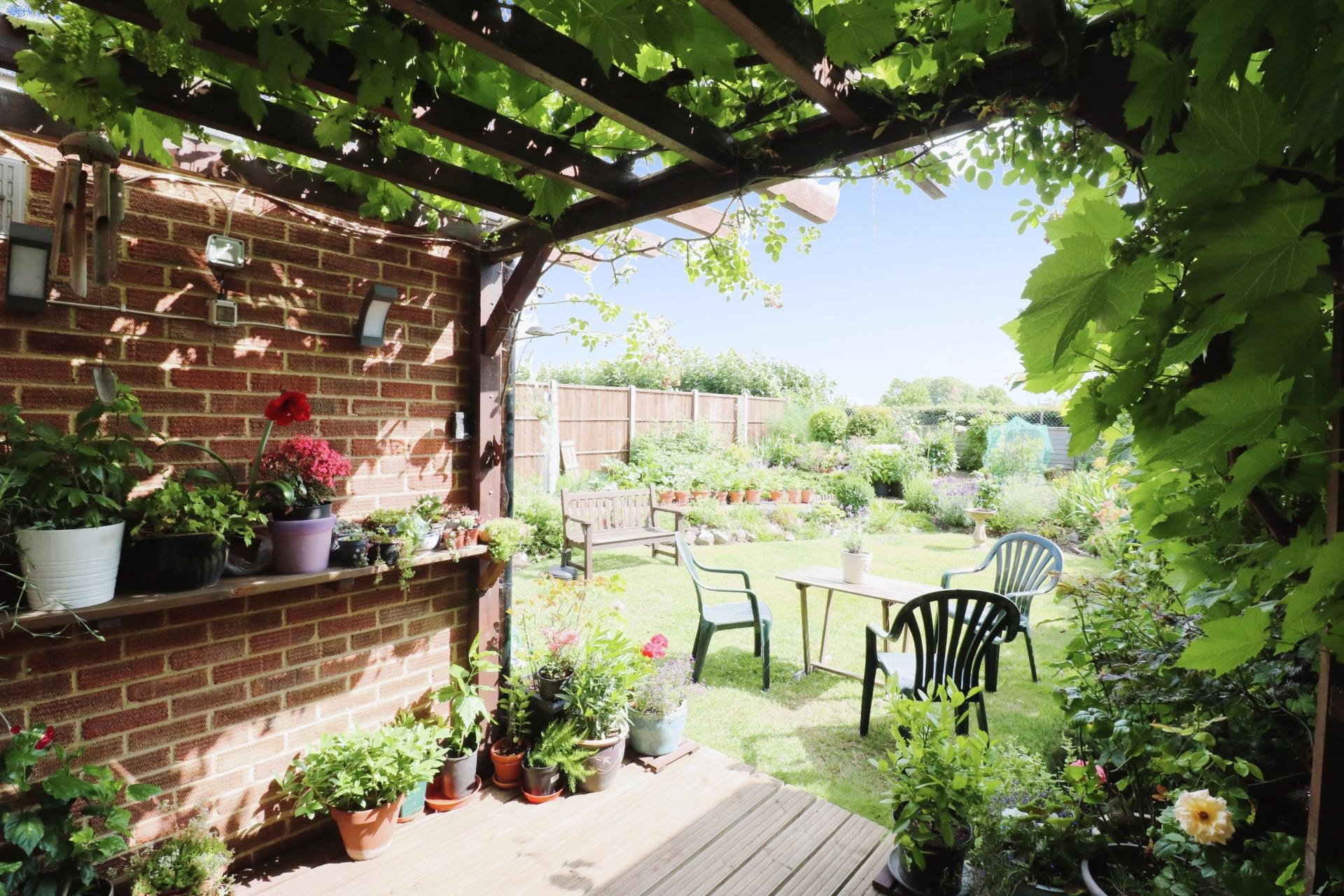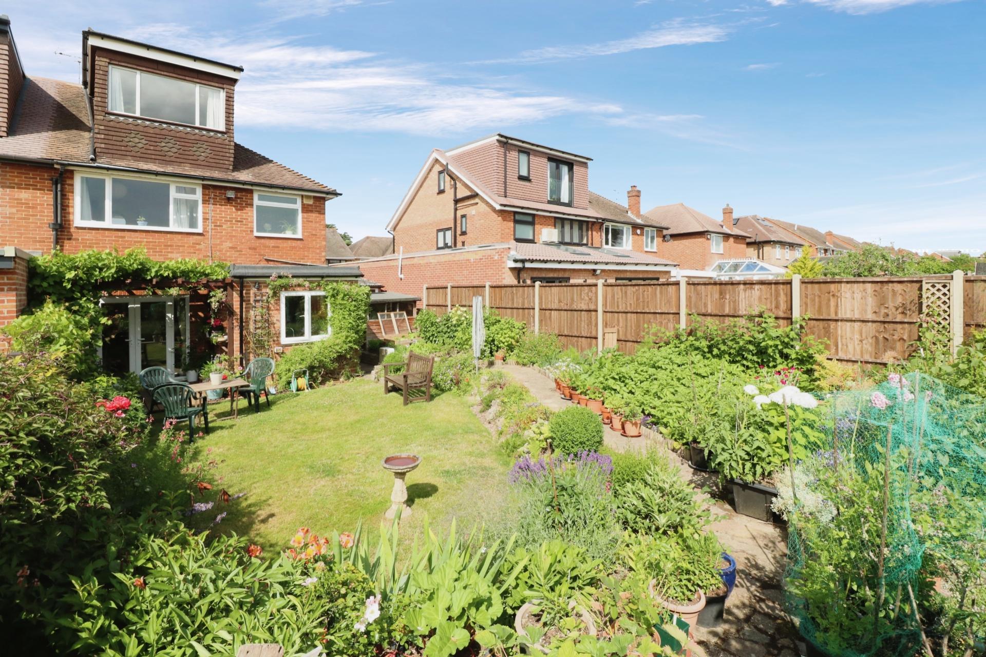 The property benefits from stunning landscaped front and rear gardens. There is driveway parking for multiple cars, with an electric vehicle charging point. There is also a garage and front garden which has mature flower beds and laid to lawn. There is side access through to the substantial private and enclosed rear garden which is directly south-facing and backs on to school playing fields. The rear garden has been beautifully landscaped and maintained by the current owners to offer raised mature flower beds, vast array of herbs, fruit and vegetables whilst still offering lawn and decking terrace.