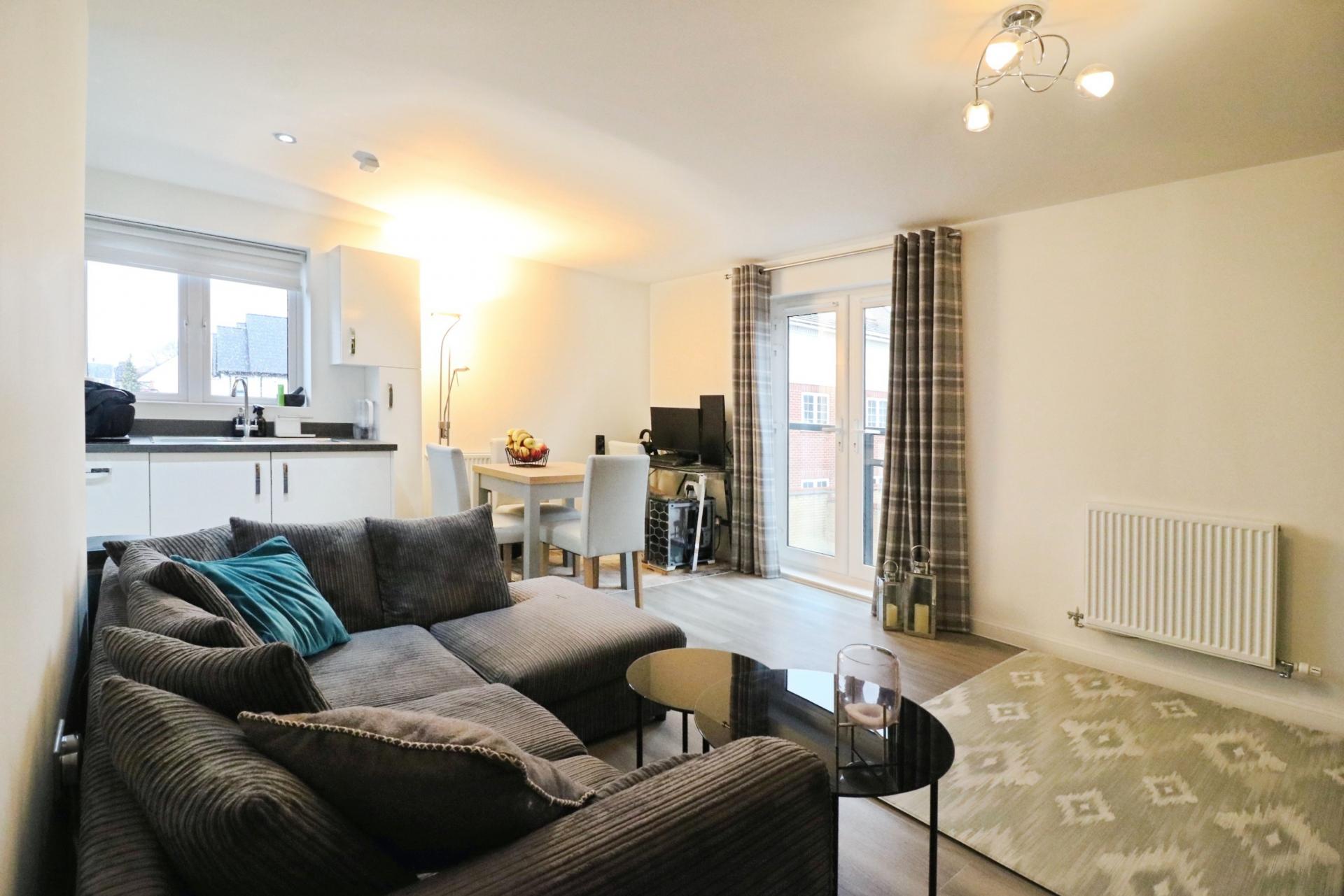 This spacious one-bedroom apartment offers bright accomodation and ample storage throughout, finished to a high standard and ready to move into. The generous living area is enhanced by a juliet balcony, allowing an abundance of natural light to pour in and create a warm, open atmosphere. The contemporary kitchen is fitted with intergrated appliances, combining modern style everyday practicality. Further benefits include gas central heating and full double glazing, ensuring comfort and energy efficiency all year round. Externally, the development enjoys well-maintained communal gardens, while the property also benefits from allocated parking for one vehicle to the rear of the building. Beautifully presented and thoughtfully designed, this impressive home is perfectly suited to first-time buyers, investors, or professionals seeking comfortable and convenient living.